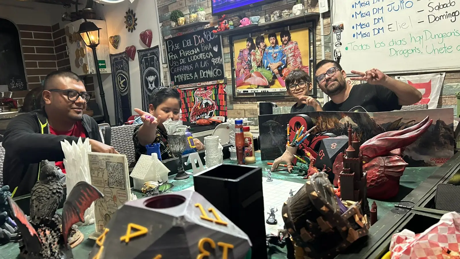 Las mesas se realizan de forma presencial en Arcadia Juegos de Mesa en Oaxaca, en un espacio cómodo y organizado para campañas de Dungeons & Dragons.